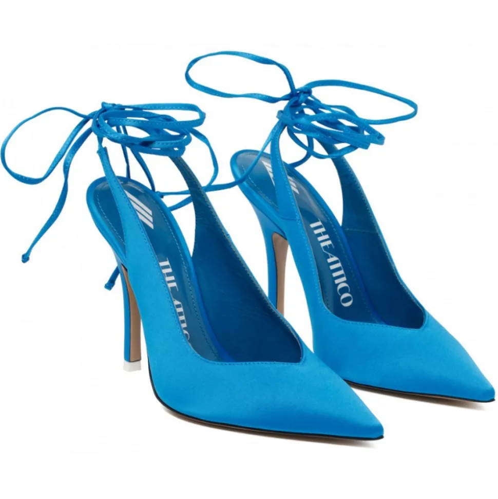 The Attico – Turquoise Fabric and Leather Ankle Tied Pumps – The Attico Exclusive Luxury Collection