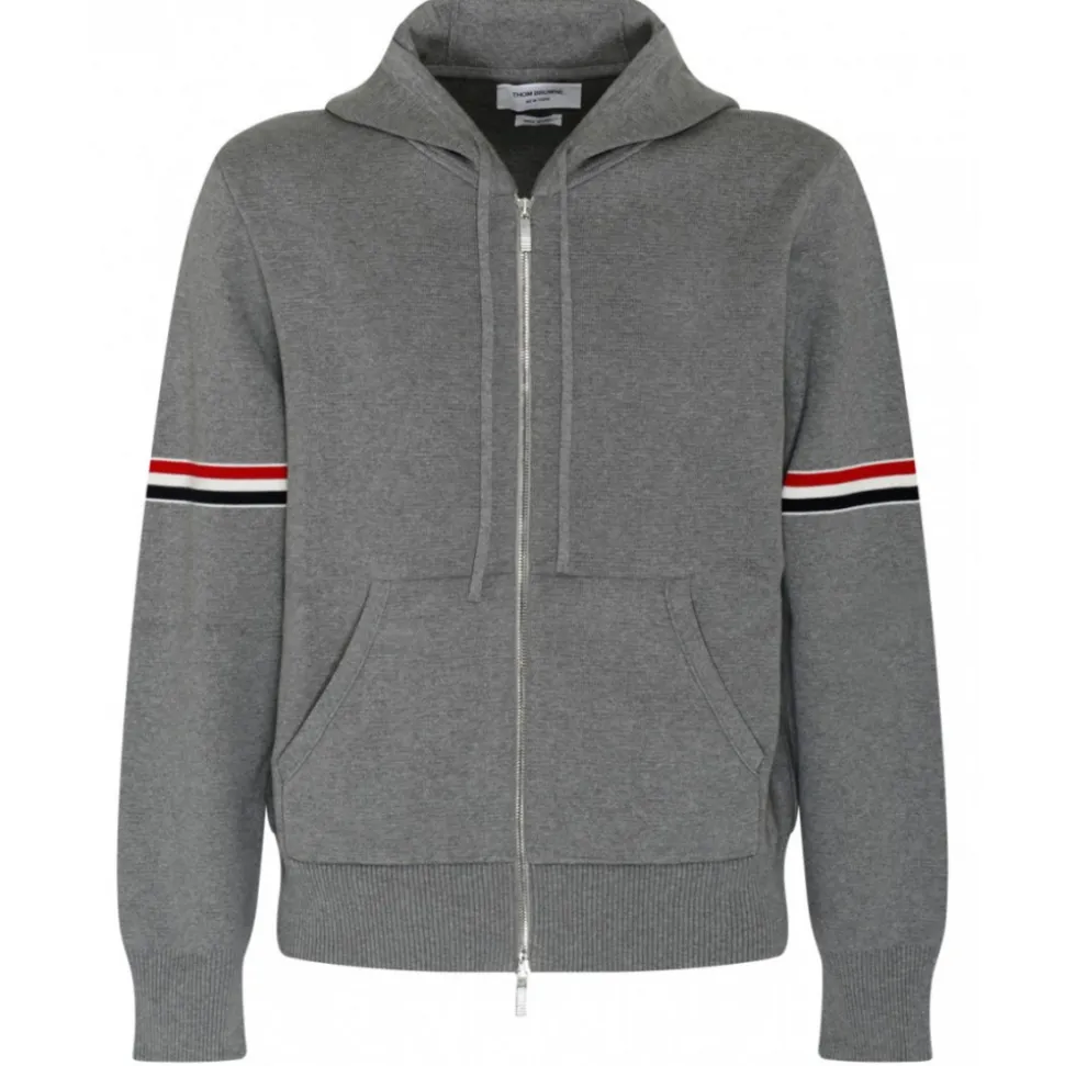 Thom Browne – Grey Striped Zip Up Hoodie – Thom Browne Exclusive Luxury Collection