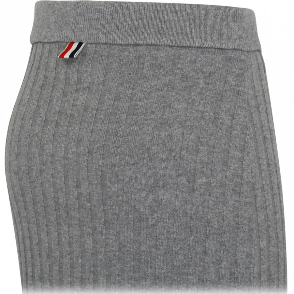 Thom Browne Light Grey Cashmere Pencil Skirt. Light grey cashmere pencil skirt, ribbed knit, knee length, classic finish.