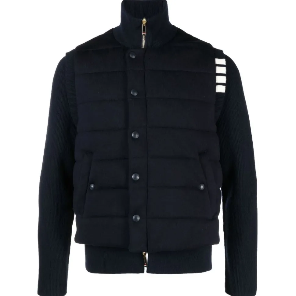 Thom Browne – Merino and Jersey Padded Reversible 4-bar Funnel Neck Jacket – Thom Browne Exclusive Luxury Collection