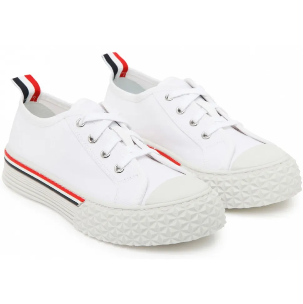 Thom Browne – White Canvas Low Top Sneakers – Thom Browne Exclusive Luxury Collection