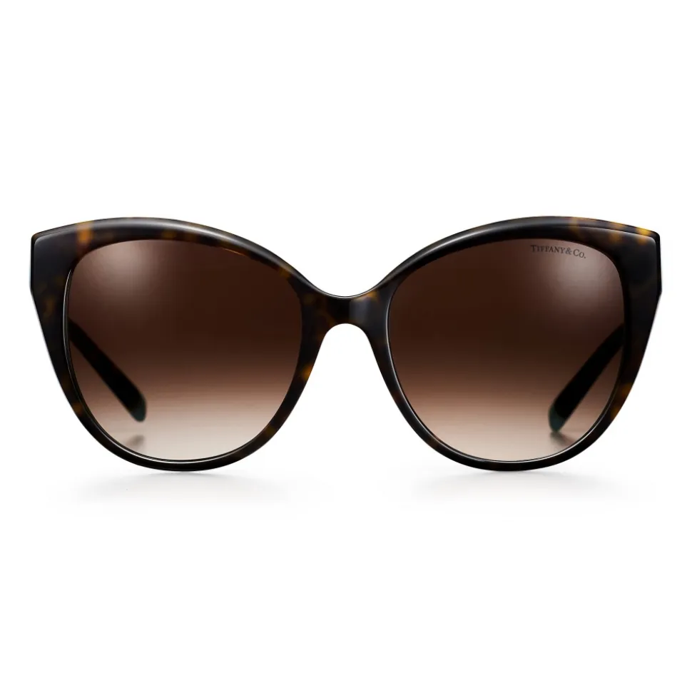 Graphic angles and clean lines blend to create the beautiful clarity of the Tiffany T collection. Take center stage in these geometric cat eye sunglasses, designed in tortoise and Tiffany Blue® acetate with subtle “T” accents.