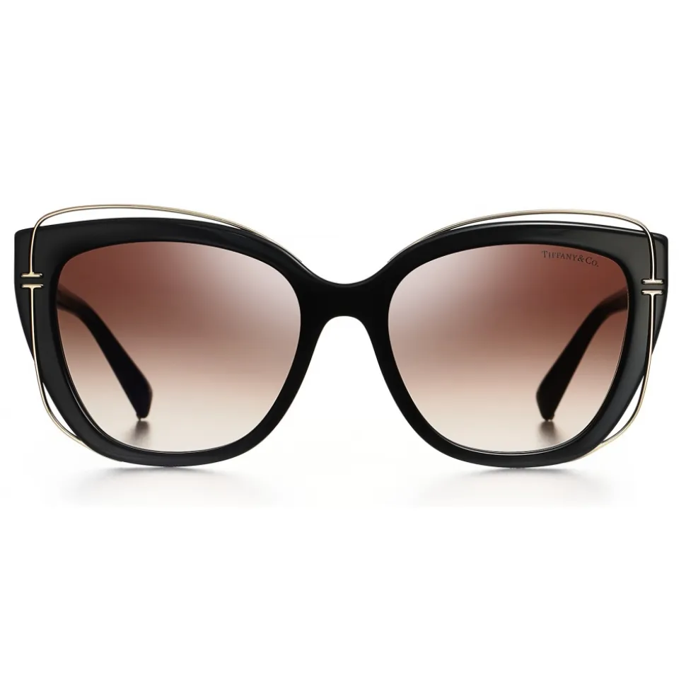 Graphic angles and clean lines blend to create the beautiful clarity of the Tiffany T collection. These cat eye frames artfully play with negative space through a curved T metal detail.