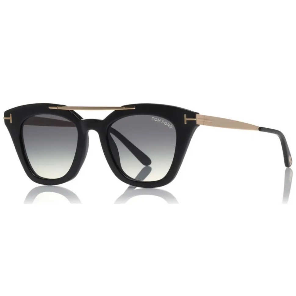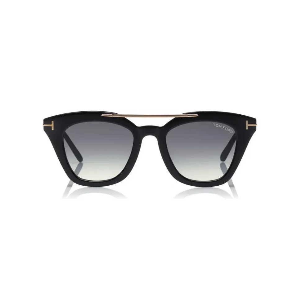Soft squared style with metal bridge and temples enriched by the T logo. Flat lenses.
