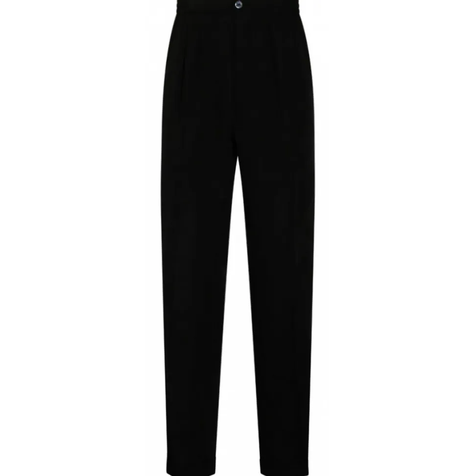 Tom Ford Black Lyocell Straight Leg Trousers. Black lyocell trousers, front button and zip fastening, rear elastic waistband, two rear patch pockets and pleat detailing.