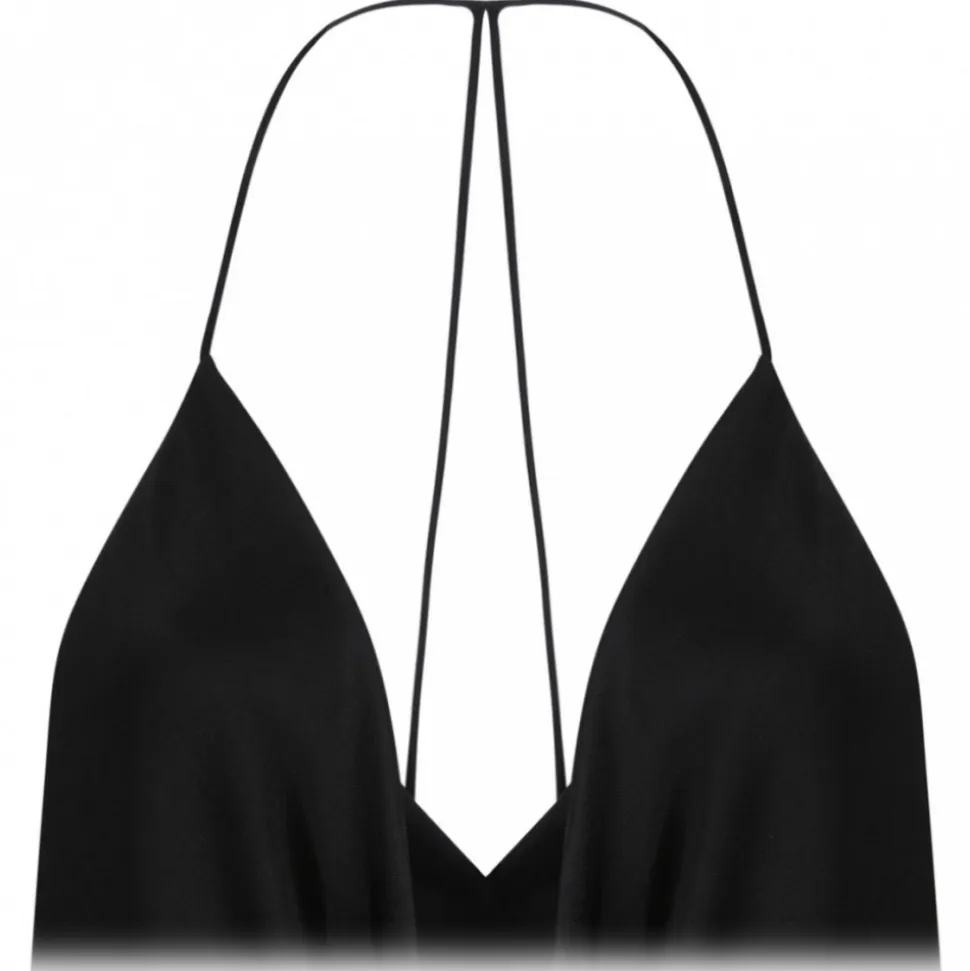 Tom Ford Black Tank Top. Black jersey halternenck tank top, cowl collar, spaghetti straps, crafted in fluid knitted viscose stretch jersey.