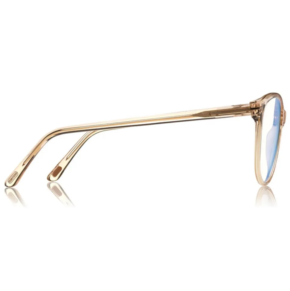 Discover the latest ready-to-wear clear lenses now available in TOM FORD Eyewear. These special lenses intended to prevent and relieve eye strain caused by long exposure to blue light from digital devices, increasing visual comfort. Soft cat-eye like acetate style with metal ‘T’ temple decoration.