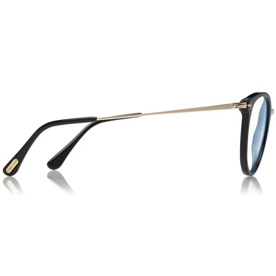 Discover the latest ready-to-wear clear lenses now available in TOM FORD Eyewear. These special lenses intended to prevent and relieve eye strain caused caused by long exposure to blue light from digital devices, increasing visual comfort. Soft rounded style characterized by a combination between metal and acetate, with metal “T” logo decoration.