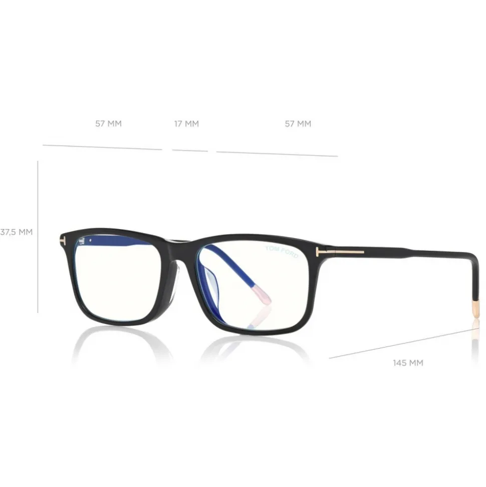 Discover the latest ready-to-wear clear lenses now available in TOM FORD Eyewear. These special lenses intended to prevent and relieve eye strain caused caused by long exposure to blue light from digital devices, increasing visual comfort. Squared acetate style with metal “T” logo decoration.