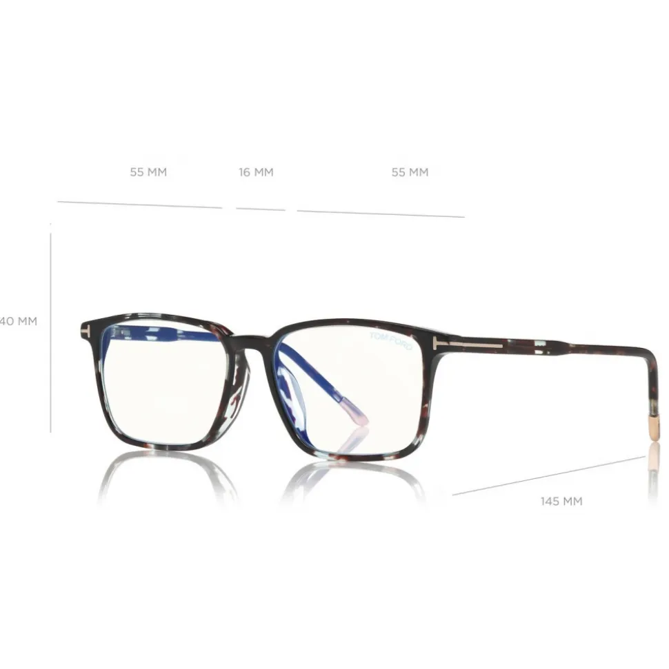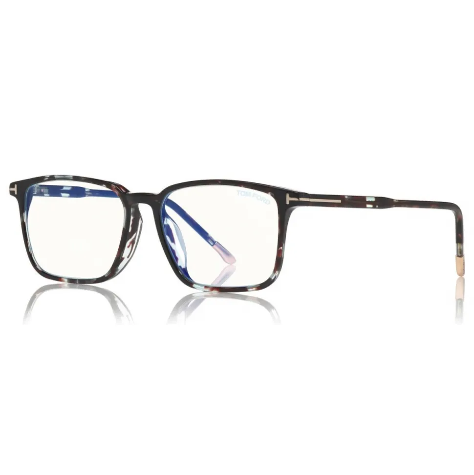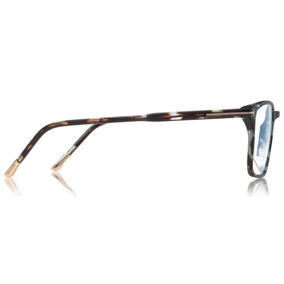 Discover the latest ready-to-wear clear lenses now available in TOM FORD Eyewear. These special lenses intended to prevent and relieve eye strain caused caused by long exposure to blue light from digital devices, increasing visual comfort. Squared acetate style with metal “T” logo decoration.