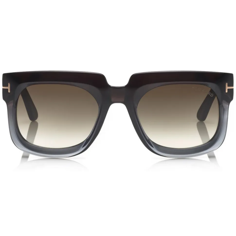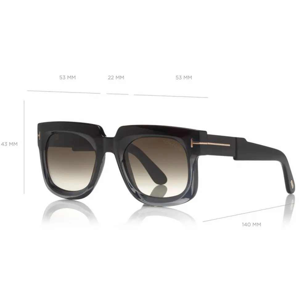 Soft squared plastic style with metal ‘T’ logo decoration and edgy temples.