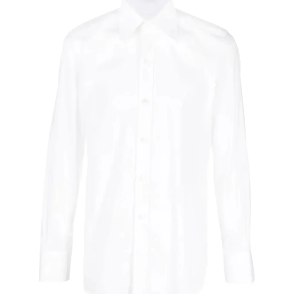 Tom Ford White Shirt. White cotton shirt, spread collar, front button fastening, long sleeves. Buttoned cuffs and straight hem.