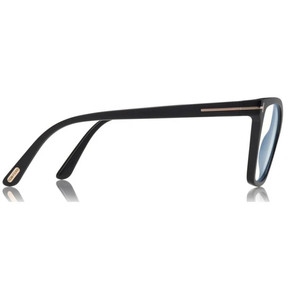 Discover the latest ready-to-wear clear lenses now available in TOM FORD Eyewear. These special lenses intended to prevent and relieve eye strain caused by long exposure to blue light from digital devices, increasing visual comfort. Soft squared acetate style with metal T temple decoration. The style comes with two injected magnetic clip-ons to change the look when wearing as sunglasses.