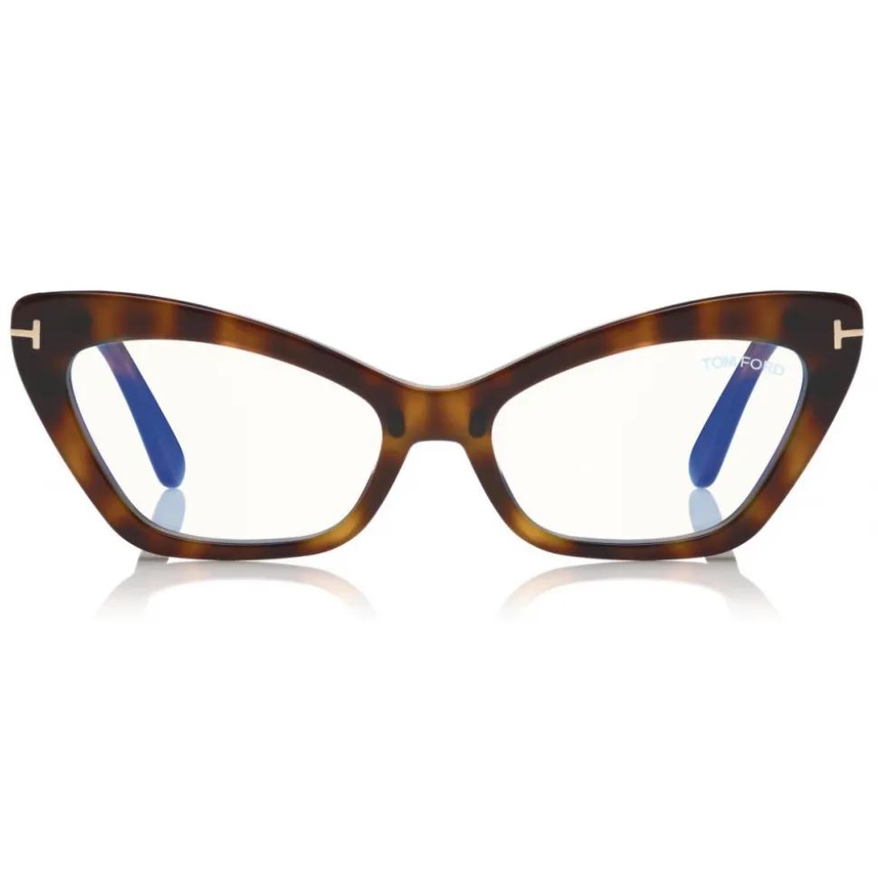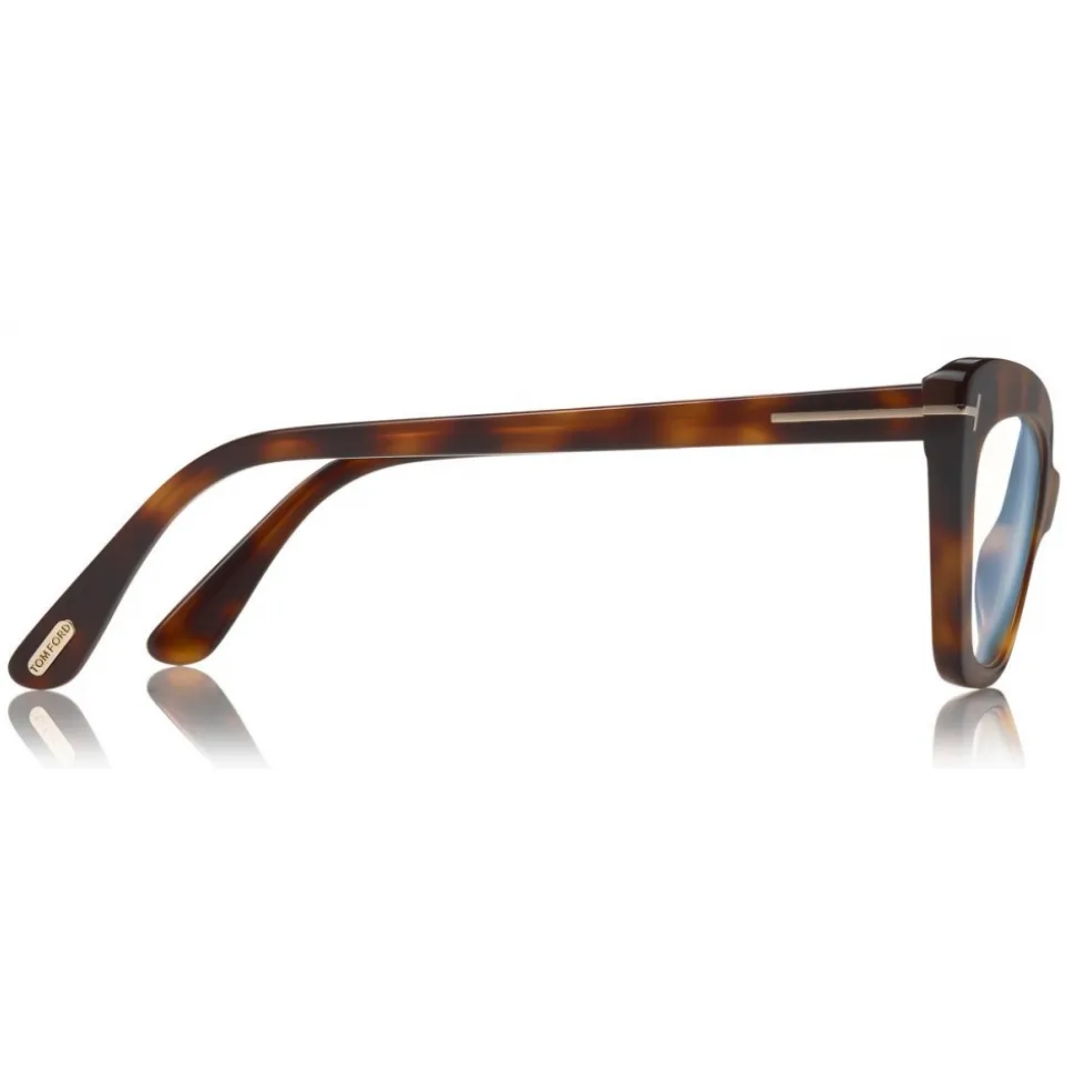 Discover the latest ready-to-wear clear lenses now available in TOM FORD Eyewear. These special lenses intended to prevent and relieve eye strain caused by long exposure to blue light from digital devices, increasing visual comfort. Cat-eye like acetate style with metal T temple decoration. The style comes with two injected magnetic clip-ons to change the look when wearing as sunglasses.