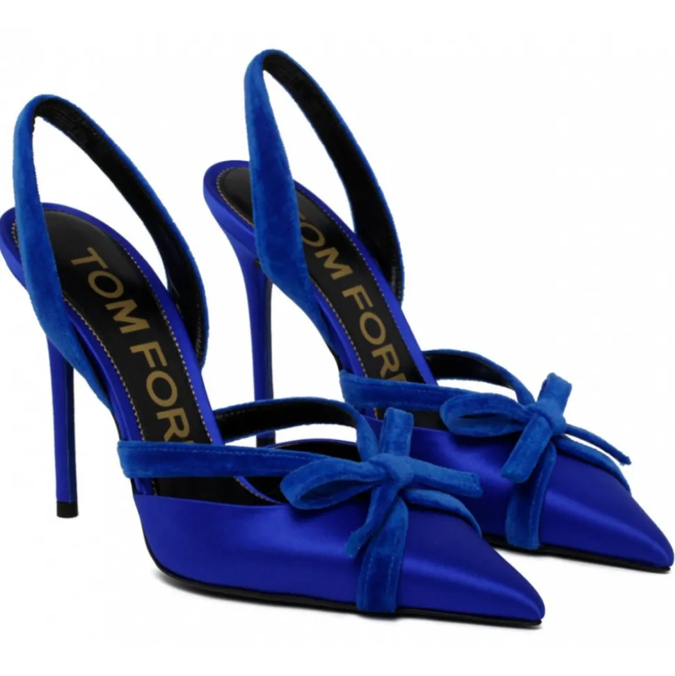 Tom Ford – Electric Blue Satin and Velvet Bow Slingback – Tom Ford Exclusive Luxury Collection