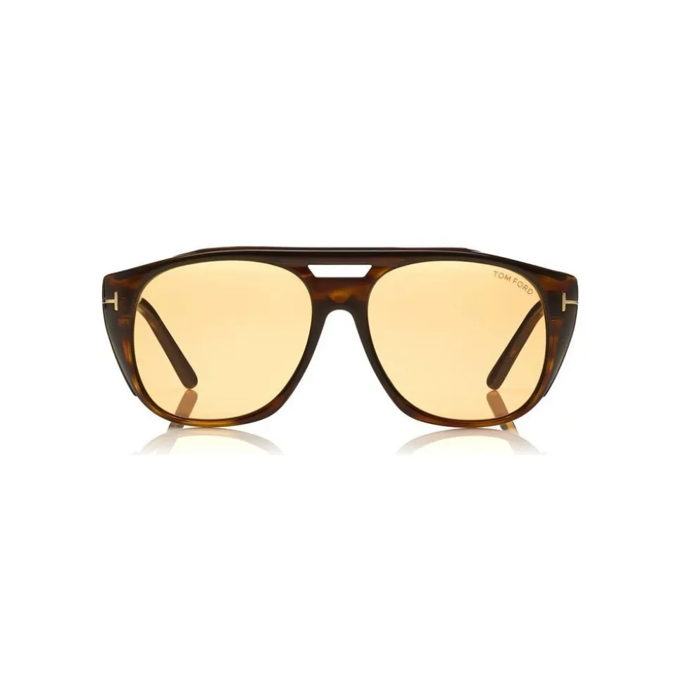 Geometric plastic shape with a bold spoiler on the side of the temple. Metal ‘T’ logo decoration.