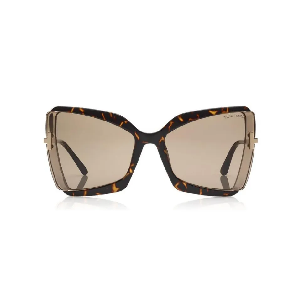 Butterfly acetate shape with geometrical metal temple which creates an extra bold ‘T’ logo decoration above the lenses.