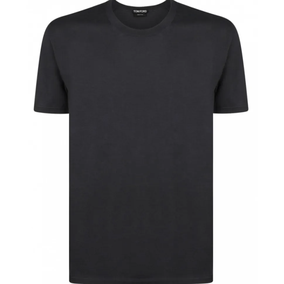 Tom Ford Graphite Crew Neck Knitwear crafted in cotton. Short sleeves. Black inner label with logo.