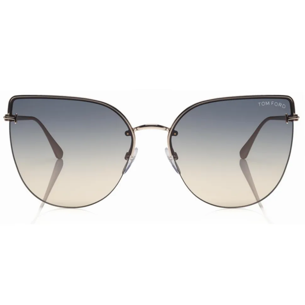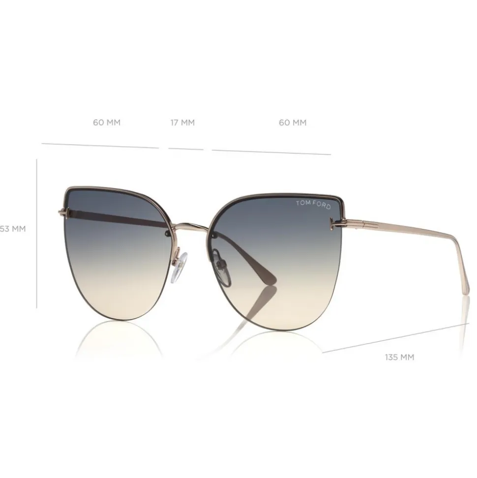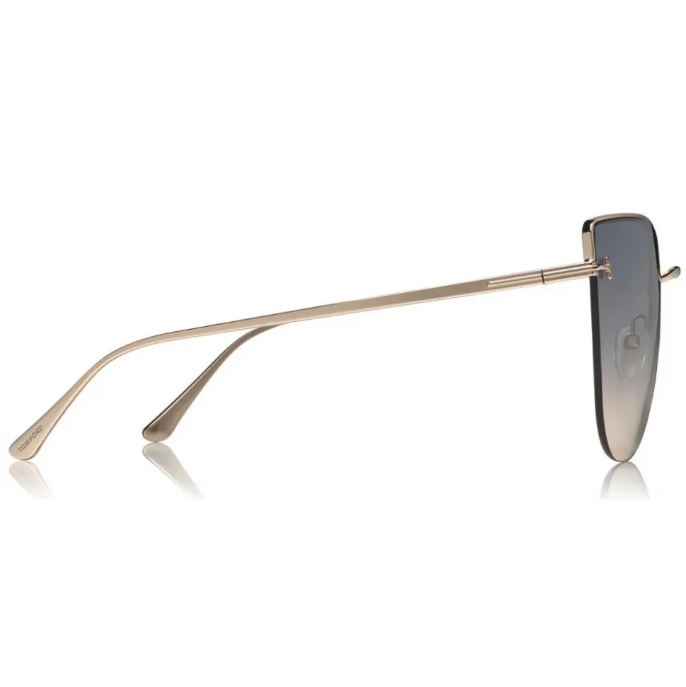 Soft cat-eye metal shape. The style is characterized by a semi rimless front and metal T logo decoration on the lens. Adjustable nose pads.