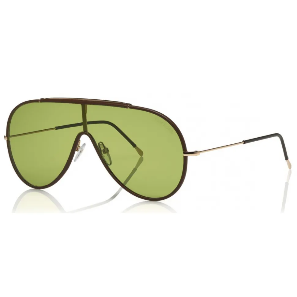 Metal shield with real leather profile on the front, recalling the infinity, and on the temple tips. Adjustable nose pads.