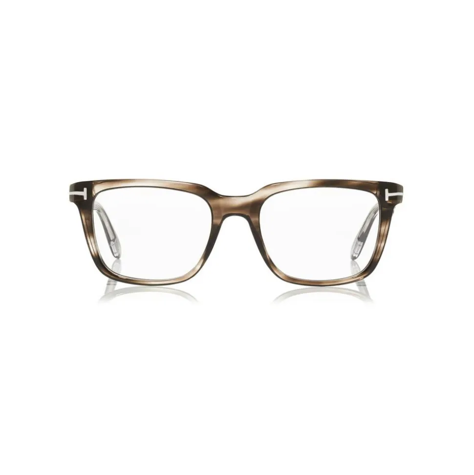 Shiny classic havana with shiny rose gold metal T logo on the temple. Stripes engraved by laser on outer surface of both temples.