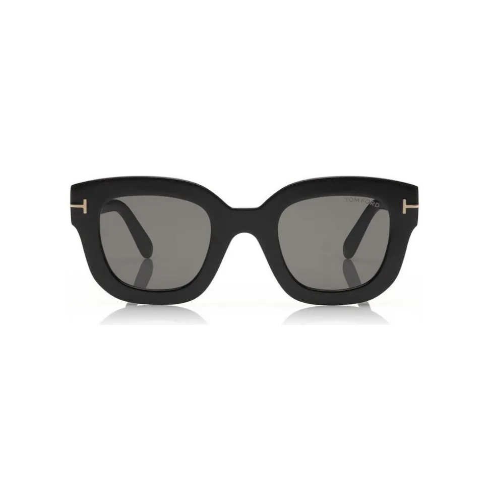 Soft squared acetate shape. The style is characterized by a flat front and by thin profiles which convey lightness to its bold design. Metal T logo decoration.