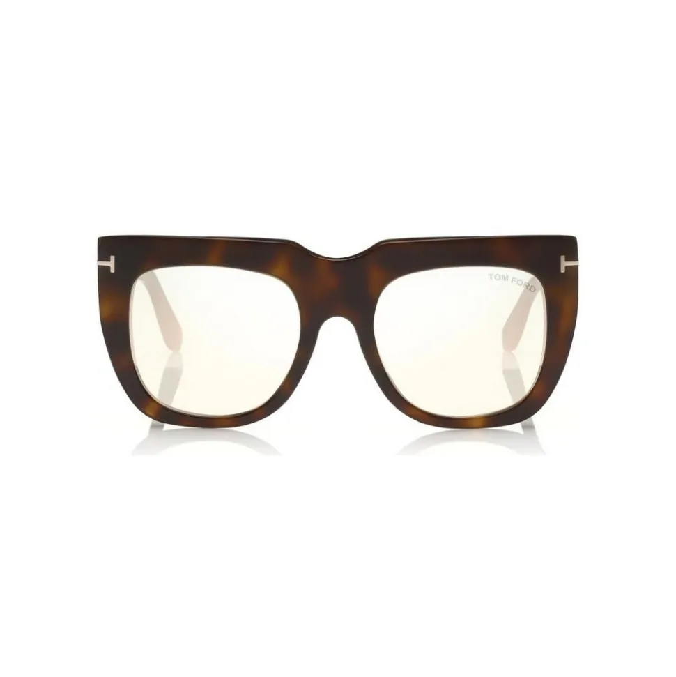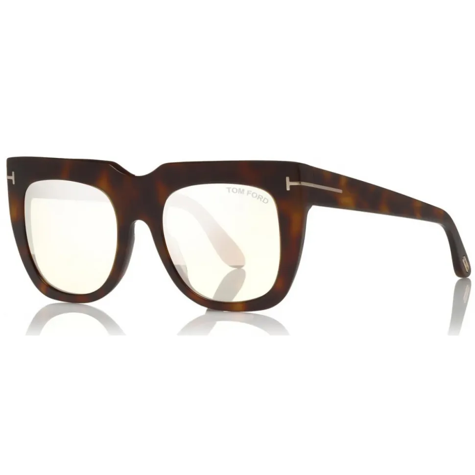 Soft squared acetate shape. The style is characterized by bold profile and metal T logo decoration.