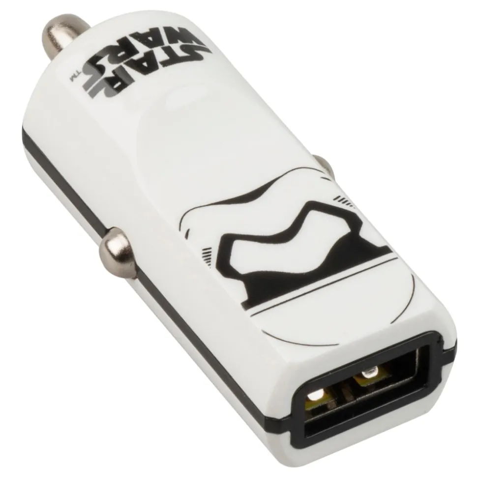 Tribe’s car chargers have a small profile but a big personality, as in this glossy-finish model inspired by the Galactic Empire’s assault troops, the legendary Star Wars Storm Troopers!