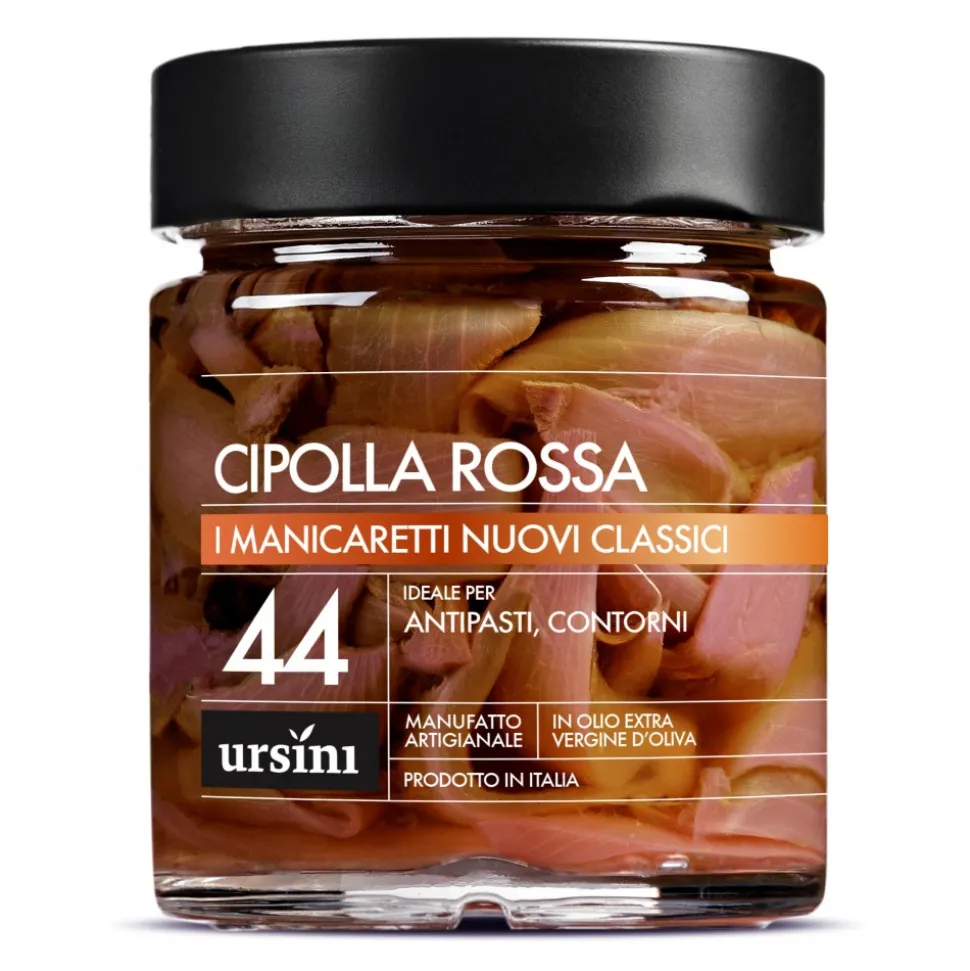 Sliced red onion in extra virgin olive oil enriched by spices. Perfect to enjoy as aperitif, moreover with a prosecco! Interesting as starter or as sidedish and it is really good combined with a Pecorino cheese.