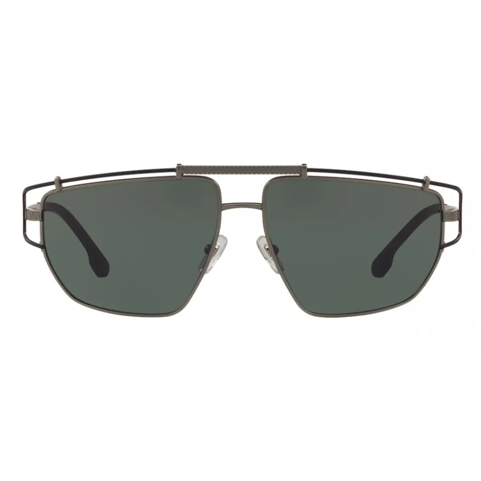 These vintage-inspired but always contemporary aviator sunglasses feature a thin structure that reinterprets luxury urban architecture, and are emphasized by the gunmetal-colored frame and green lenses.
