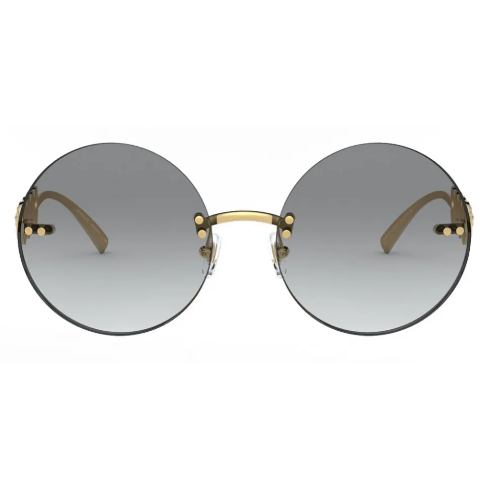Classic yet contemporary – round, rimless sunglasses with a gold bridge and grey lenses. These sunglasses boast four Medusa medallions on the gold-tone temples.