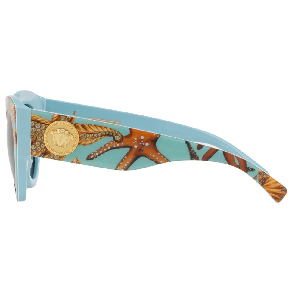 Classic sunglasses with the iconic Versace touch, characterized by a thick acetate frame and Medusa Tribute gold icons. The Mediterranean origins of Gianni and Donatella are revisited through the Trésor de la Mer print. Gianni’s fundamental influences include shells, pearls and corals: the rich marine treasures recall his native town in Calabria and express his attraction for Greek mythology and an original reinterpretation of art through fashion.