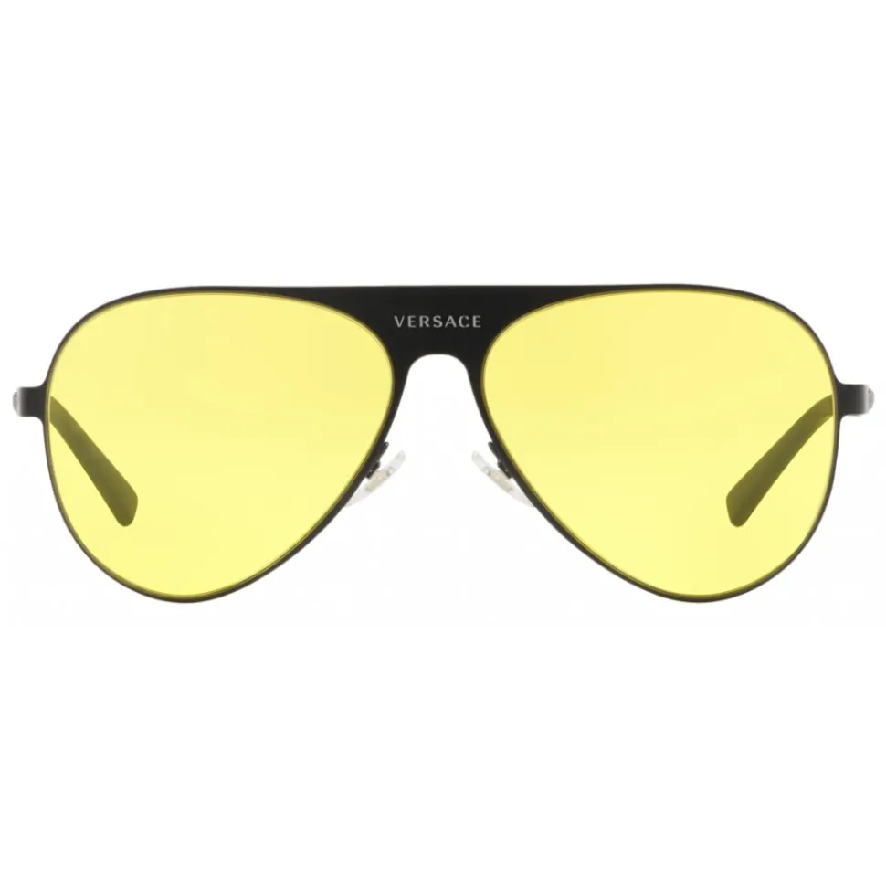 The Medusa aviator sunglasses with matte black frame, yellow lenses and Medusa studs are a real must-have signed by Versace.