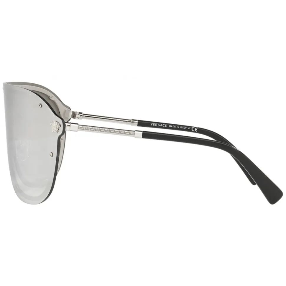 Used in the Eyewear SS17 campaign and inspired by the freedom and energy of movement, the #Frenergy silver mask features metal studs and a small Medusa on the forntale and black temples on a metal rod with engraved Greek.