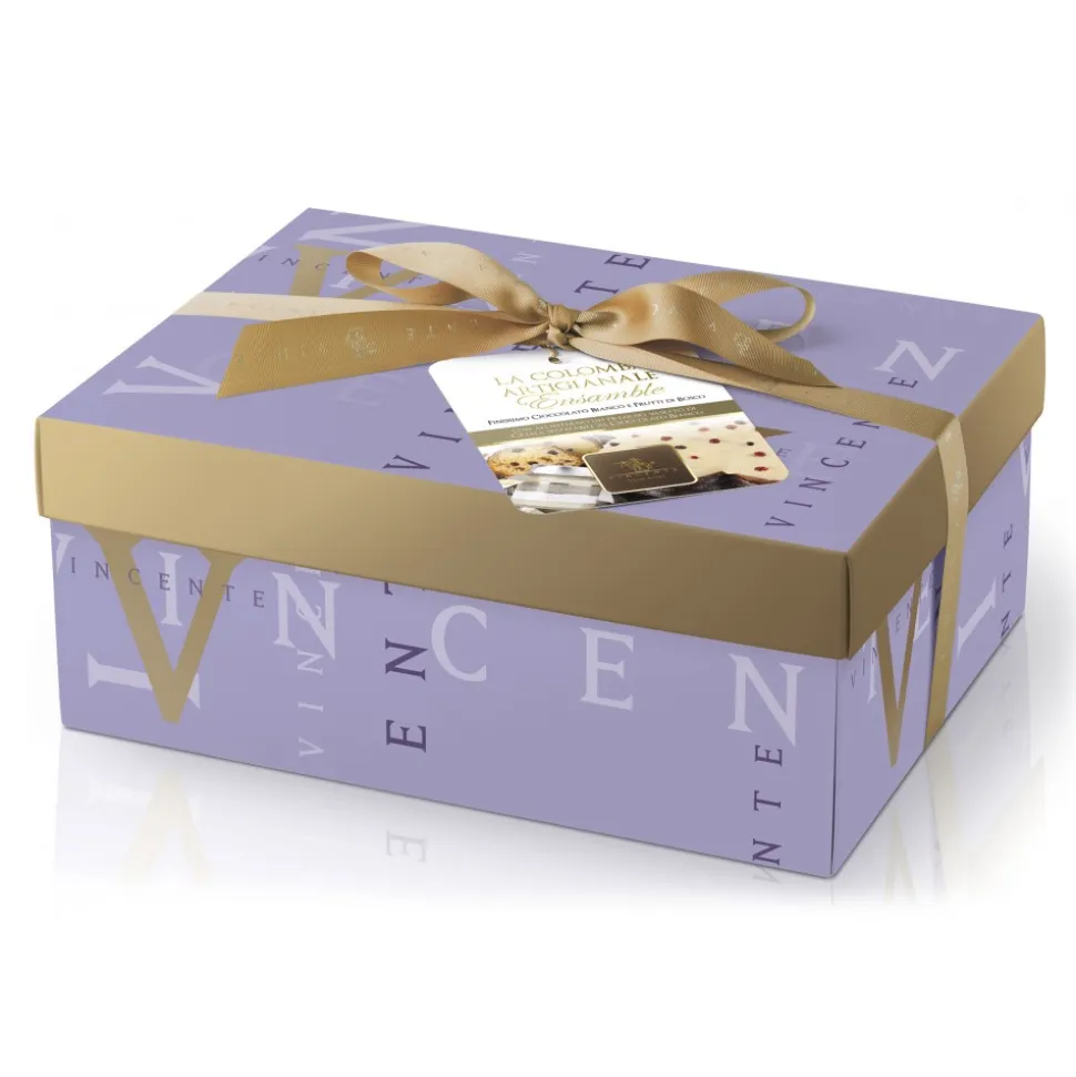 In this cake, scents of pure White Chocolate of the covering are intertwined with those of the candied berries. A sophisticated package in which also a jar of delicious white chocolate cream is contained.