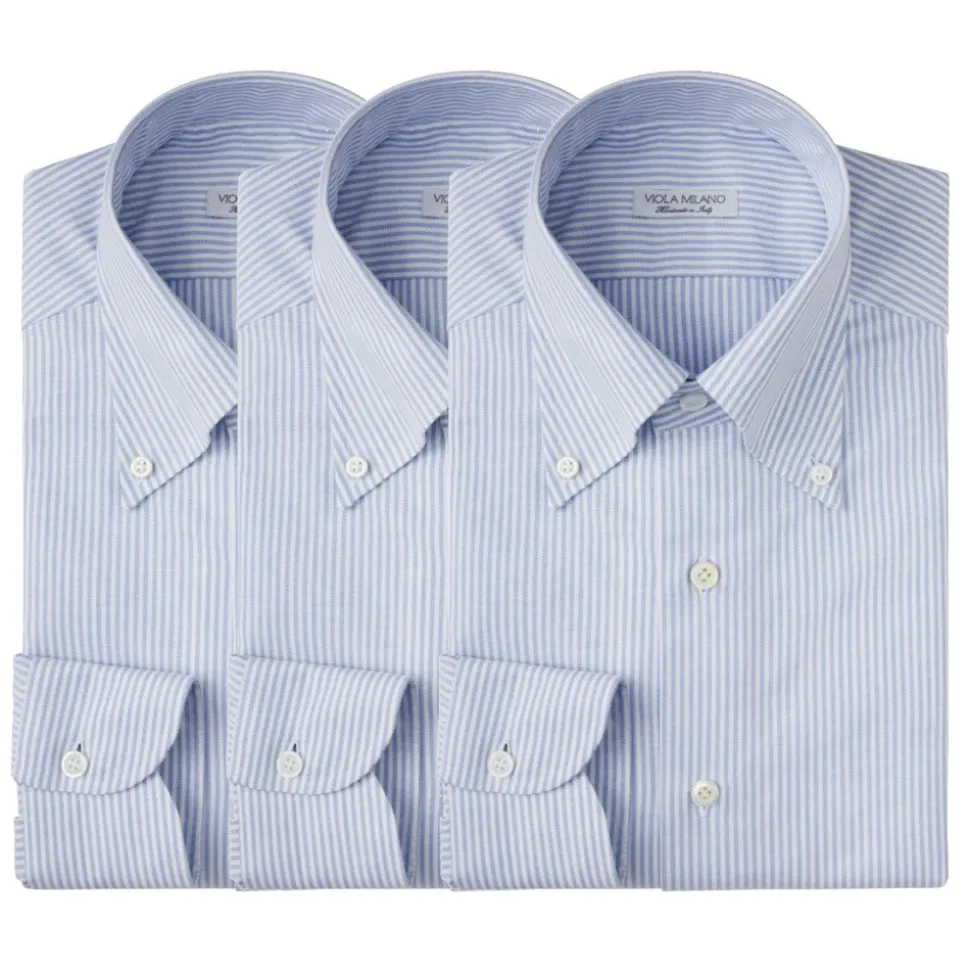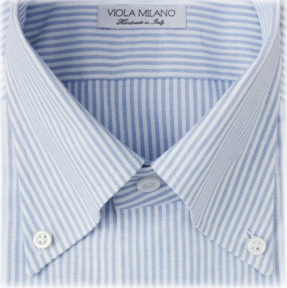 Viola Milano – 3 Oxford Stripe Package Button-Down Collar Shirt – Blue/White – Handmade in Italy – Luxury Exclusive Collection