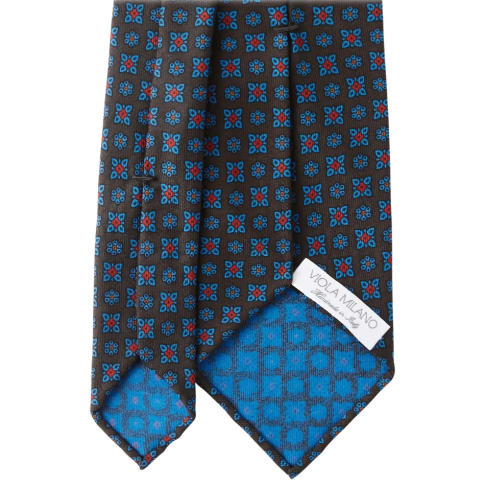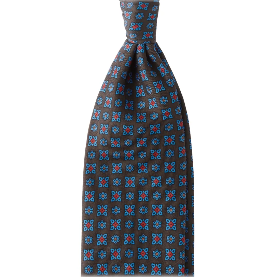 Viola Milano – Artisan Floral Handprinted Ancient Madder Silk Tie – Brown – Made in Italy – Luxury Exclusive Collection