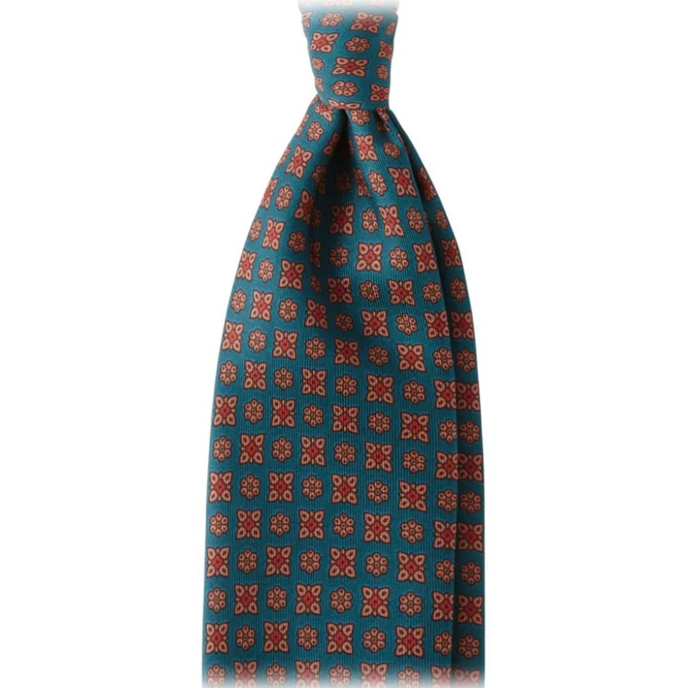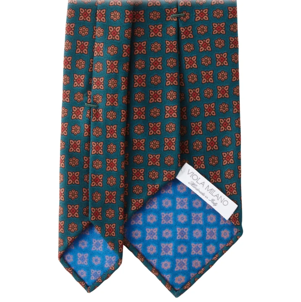 Viola Milano – Artisan Floral Handprinted Ancient Madder Silk Tie – Green – Made in Italy – Luxury Exclusive Collection