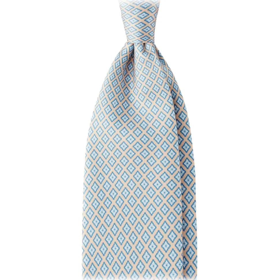 Viola Milano – Artisan Pattern Selftipped Silk Tie – Champagne – Handmade in Italy – Luxury Exclusive Collection