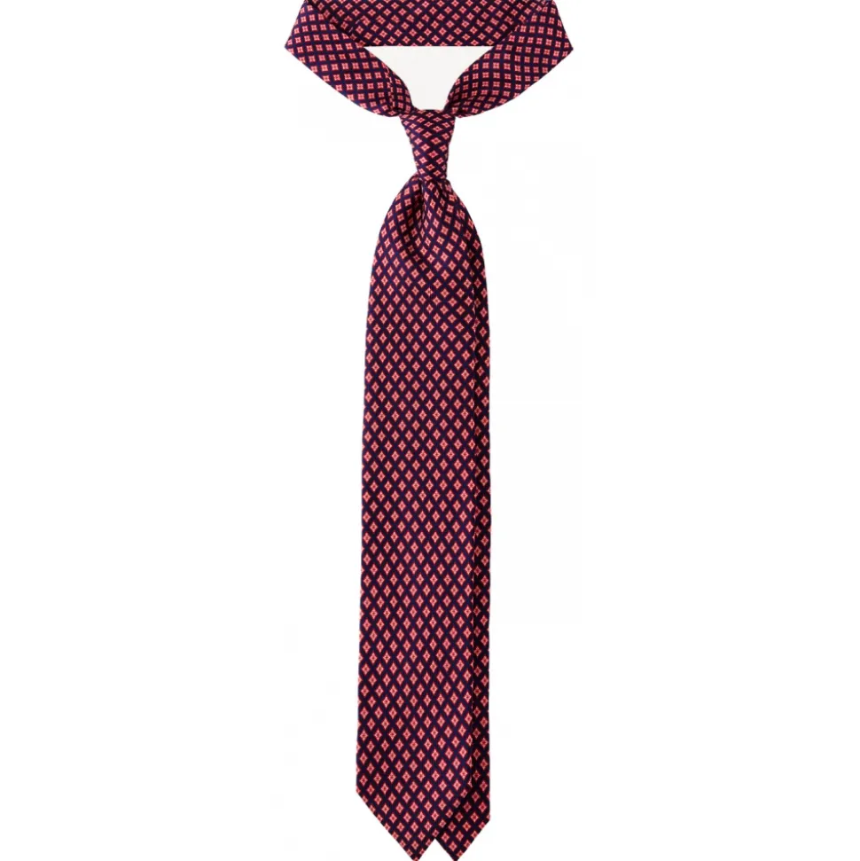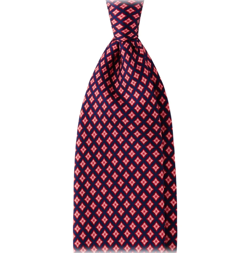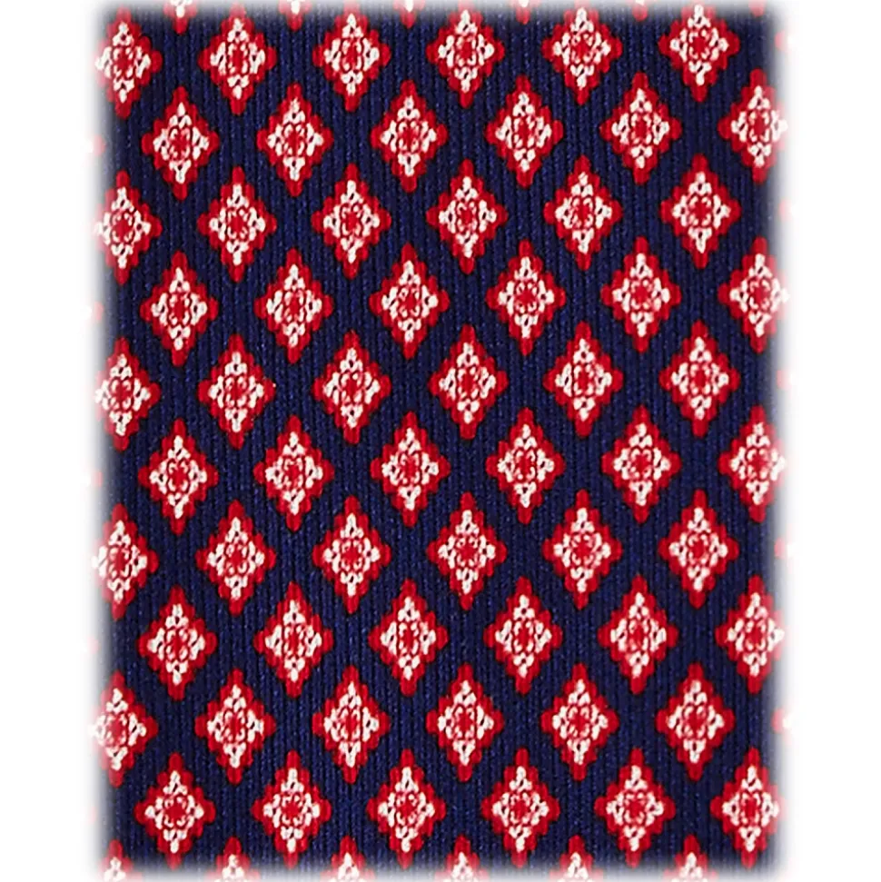 Viola Milano – Artisan Pattern Selftipped Silk Tie – Navy/Red – Handmade in Italy – Luxury Exclusive Collection
