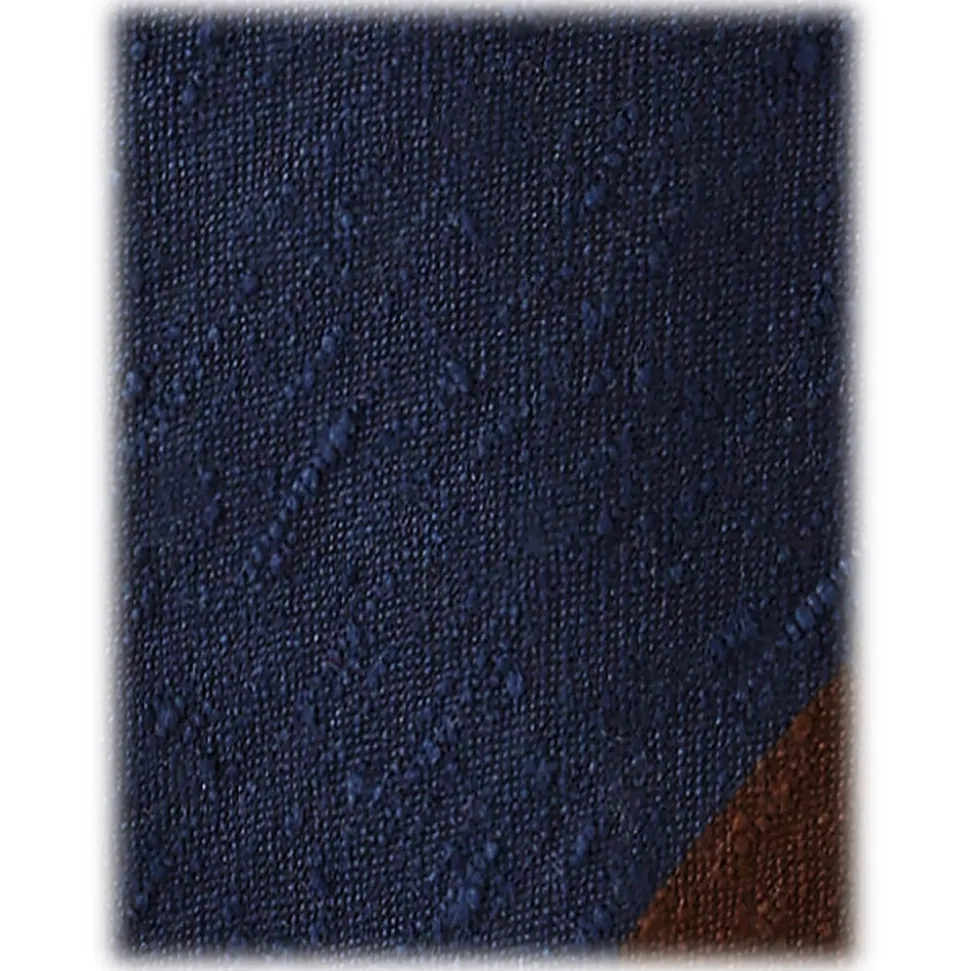 Viola Milano – Block Stripe Handrolled Woven Shantung Tie – Navy/Brown – Handmade in Italy – Luxury Exclusive Collection