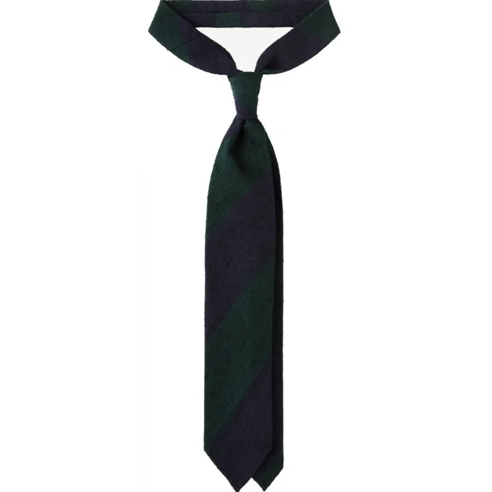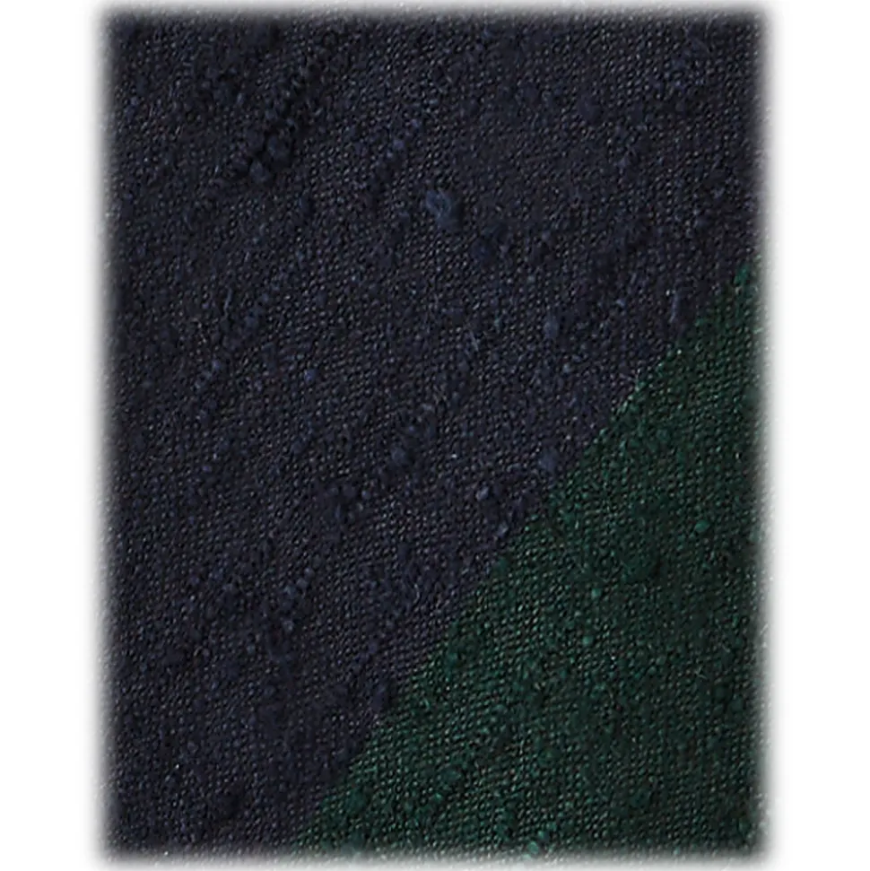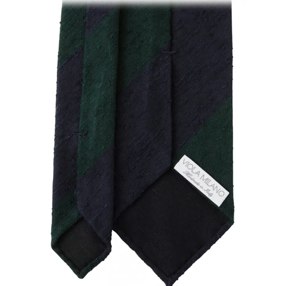 Viola Milano – Block Stripe Handrolled Woven Shantung Tie – Navy/Forest – Handmade in Italy – Luxury Exclusive Collection