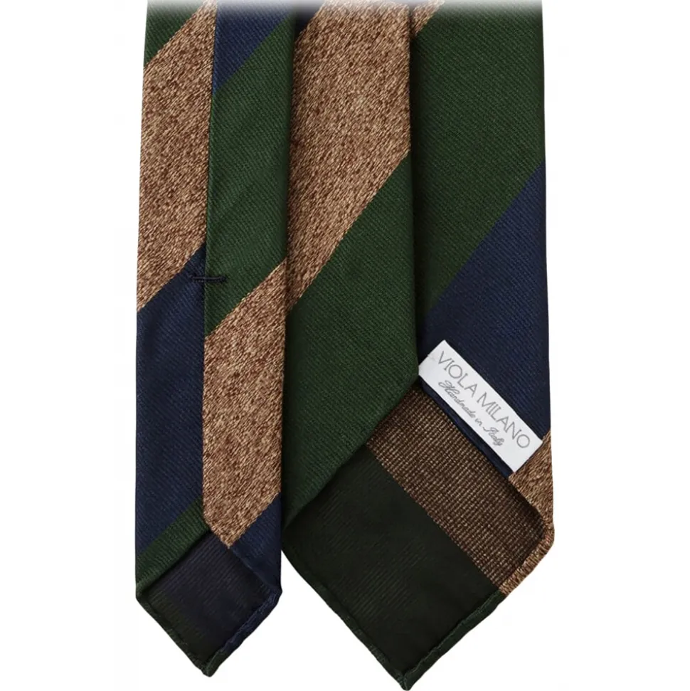 Viola Milano – Block Stripe Handrolled Woven Silk Jacquard Tie – Green Mix – Handmade in Italy – Luxury Exclusive Collection
