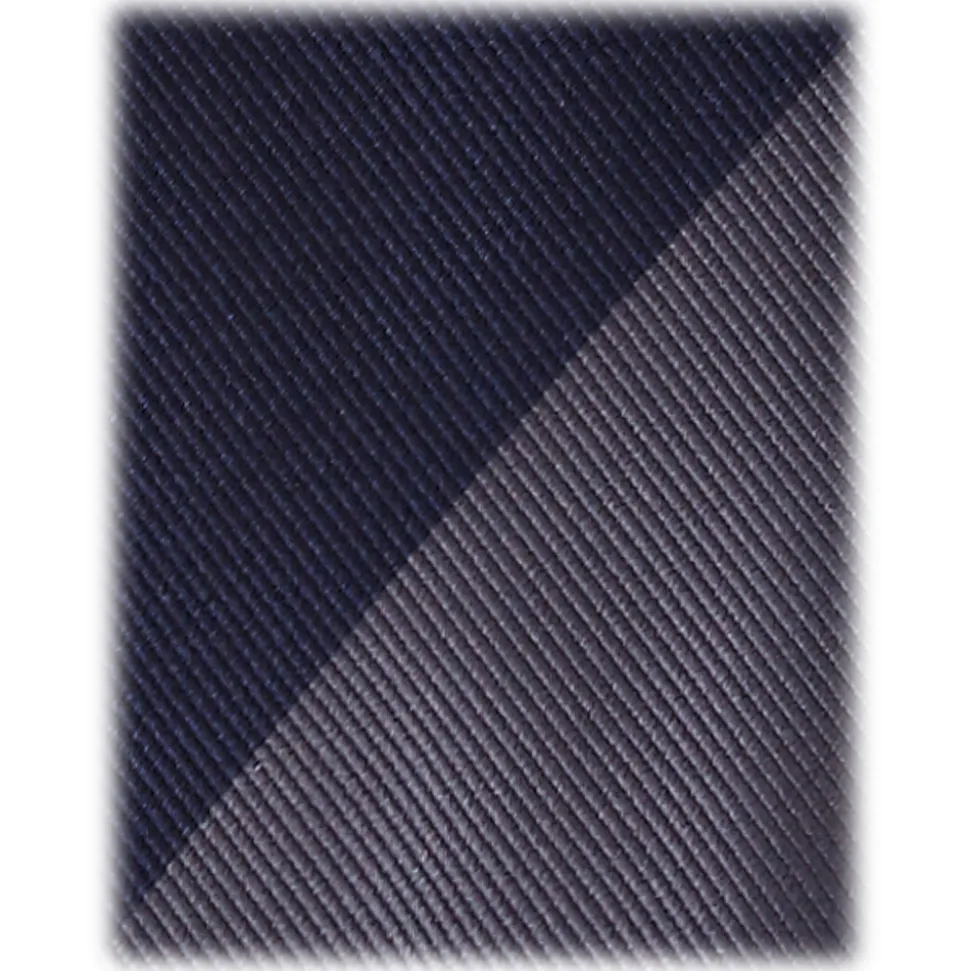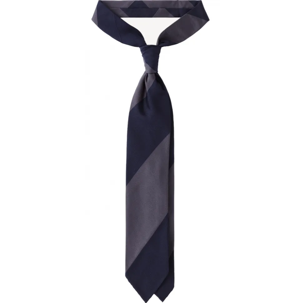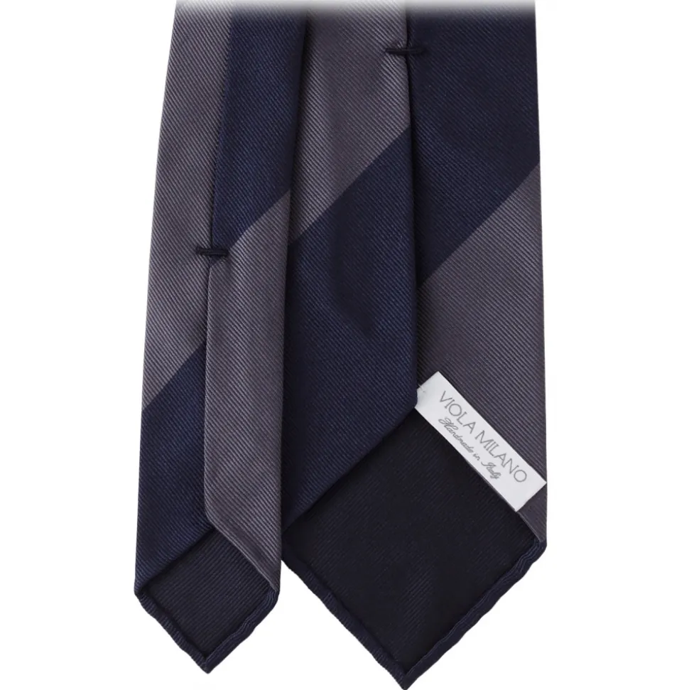 Viola Milano – Block Stripe Handrolled Woven Silk Jacquard Tie – Navy/Sea – Handmade in Italy – Luxury Exclusive Collection