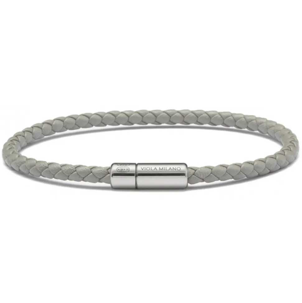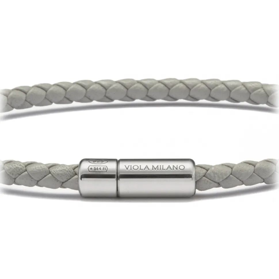 Viola Milano – Braided Italian Leather Bracelet – Grey – Handmade in Italy – Luxury Exclusive Collection