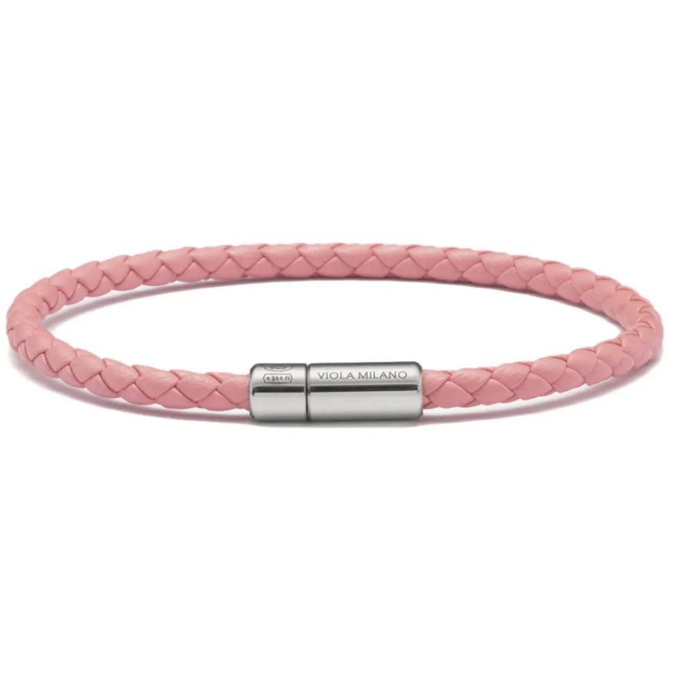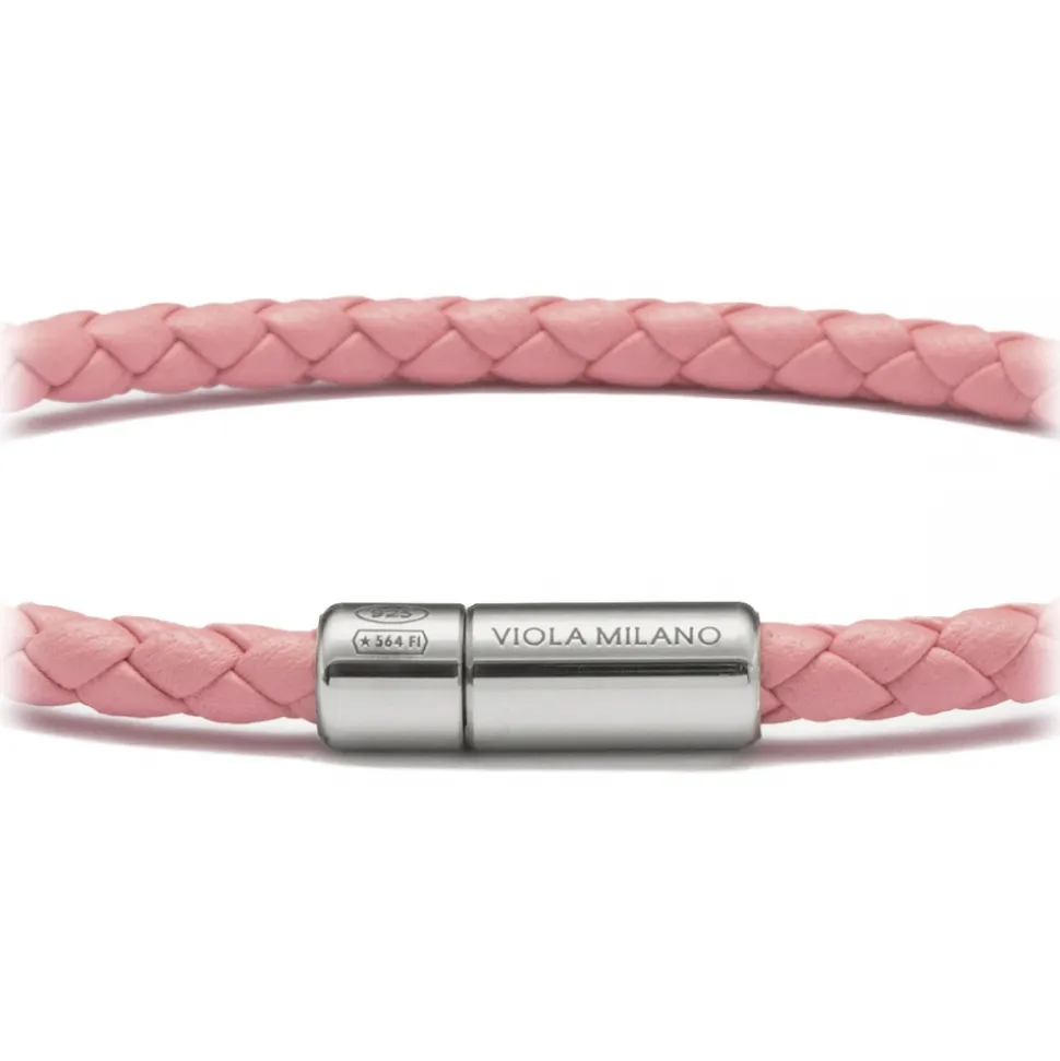 Viola Milano – Braided Italian Leather Bracelet – Pink – Handmade in Italy – Luxury Exclusive Collection