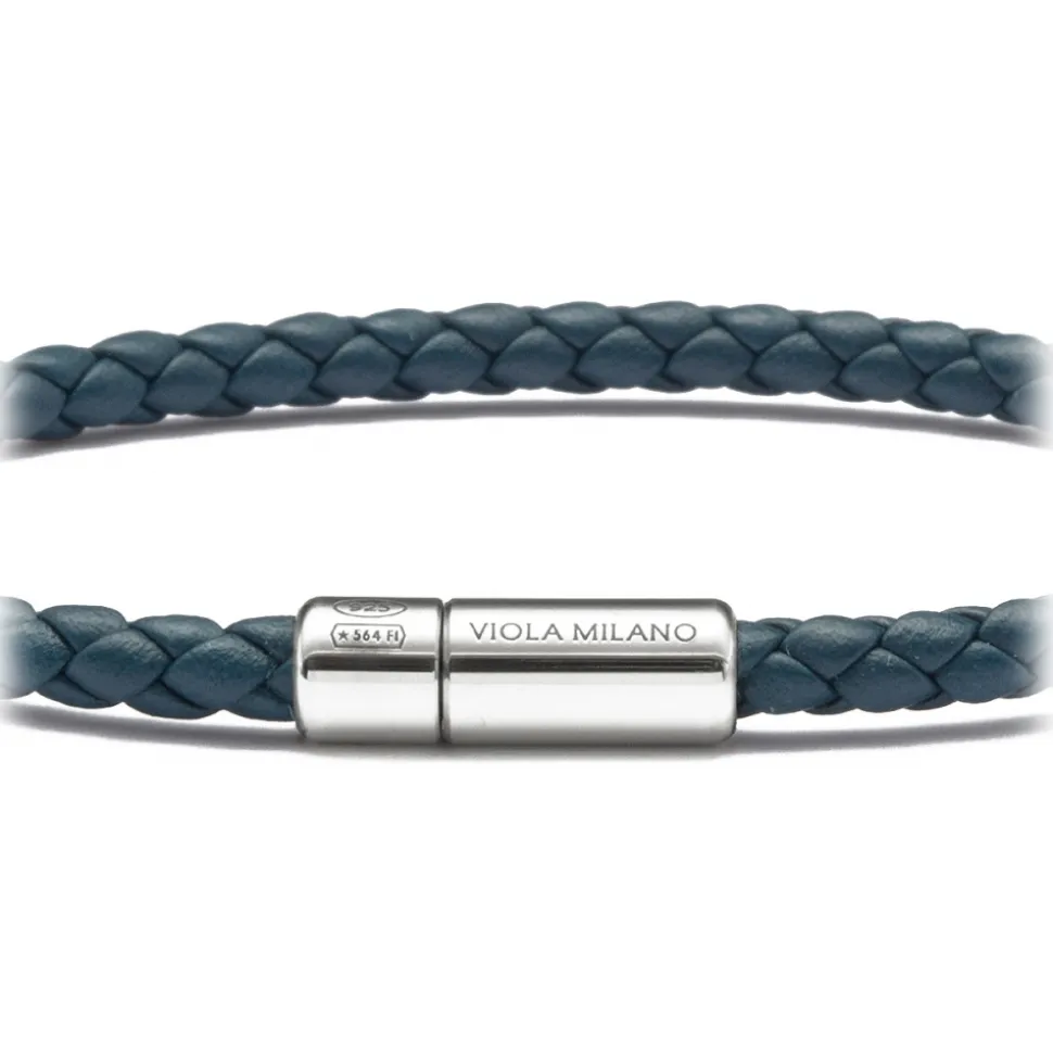 Viola Milano – Braided Italian Leather Bracelet – Sea Blue – Handmade in Italy – Luxury Exclusive Collection