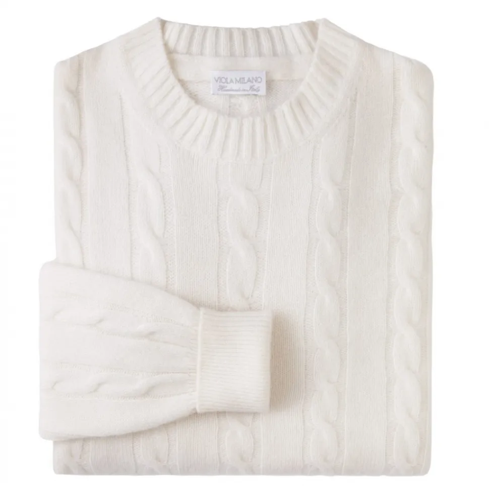 Viola Milano – Cable Knit Loro Piana Cashmere Sweater – Ivory – Handmade in Italy – Luxury Exclusive Collection