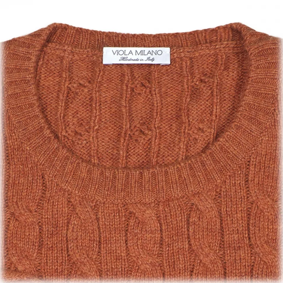 Viola Milano – Cable Knit Loro Piana Cashmere Sweater – Orange – Handmade in Italy – Luxury Exclusive Collection