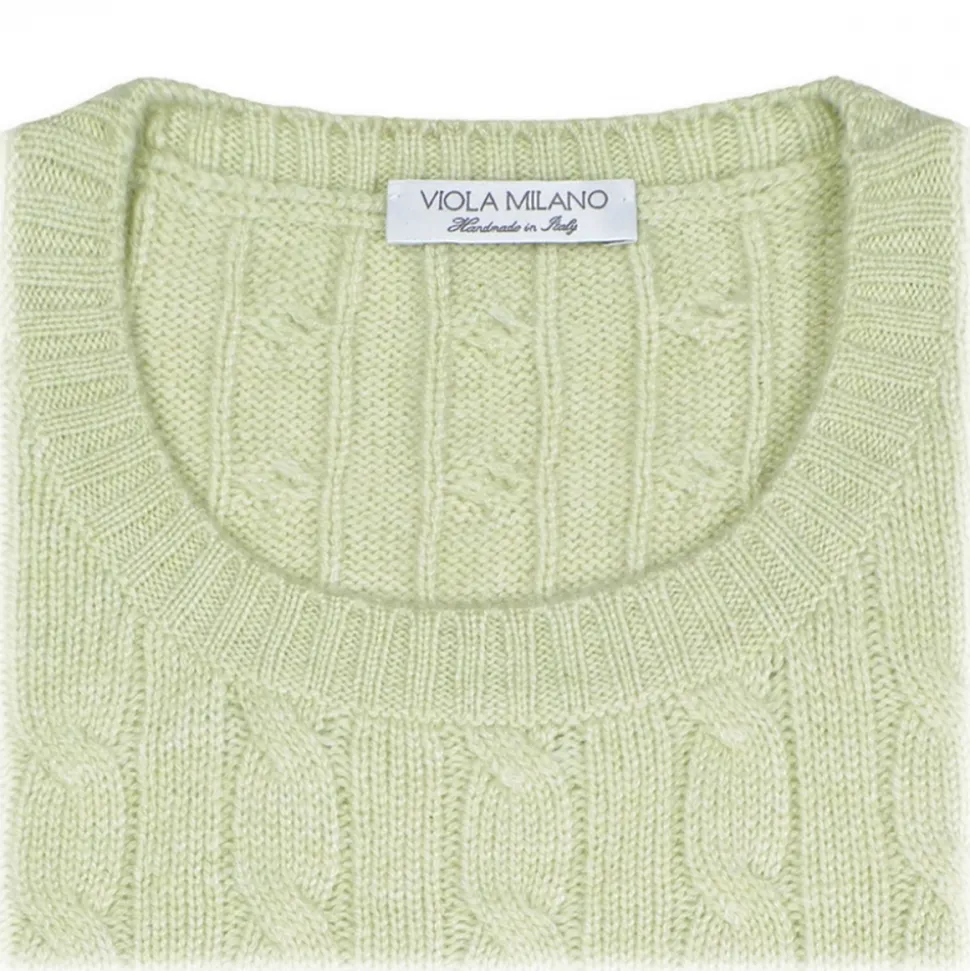 Viola Milano – Cable Knit Loro Piana Cashmere Sweater – Pistasch – Handmade in Italy – Luxury Exclusive Collection
